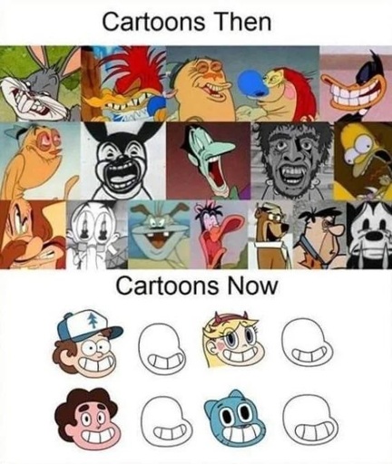 The OP is disingenuous, but animation is having a problem these days with restricted budgets, homogenized designs, and poor use of digital tools. Quality animation was always expensive and therefore in the minority, but the everyday budget stuff is worse than in the past. There are recent series that I can’t even watch due to awful framerates and bad CGI.