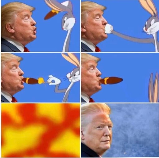 The best part of this classic bug bunny gag is that the last picture of trump face is unaltered.