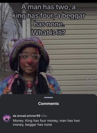 minus-squarekubica@fedia.iolinkfedilinkarrow-up14arrow-down1·3 months agoPeople don’t believe that answer because it would be more like “King has 1000, Man has 1, Beggar has 0”