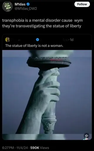 Aside from the absurdity of them transvestigating a statue, it’s just more of their usual nonsense. Sometimes they pretend that they care about protecting cis women, but their stringent criteria on what traits it’s valid for a woman to have makes it obvious that they only care about hurting trans women. They’re pretty transparent about it.