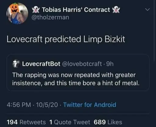 it’s weird how limp bizkit is amazing when it’s just wes borland playing; then fred ruins it by starting to sing