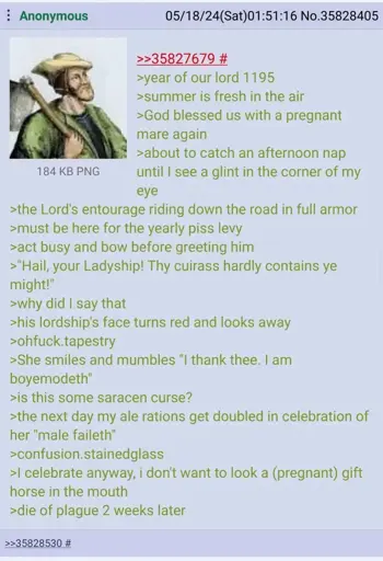 The noble is trans, the piss levy is to make their HRT, ye olde anon got more ale rations due to awkward rizz. that’s what I got out of it.