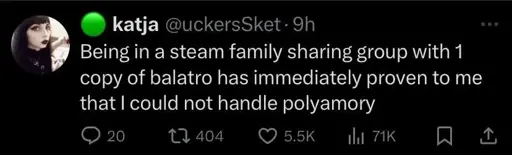 I’m in a family group with only my wife and even we have 2 copies of Balatro.