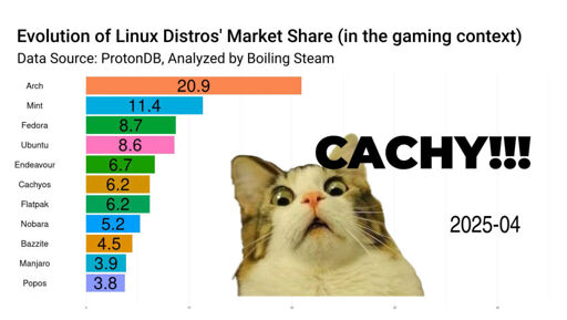 Oh, and i’m pretty sure I know where flatpak is from. The instructions to input your system data in ProtonDB relies on steam’s system information. My OS shows as flatpak by default because I installed a flatpak version of steam from the pop shop. If someone doesn’t manipulate it themselves, it shows as “OS: Freedesktop SDK 25.08 (Flatpak runtime)” - The most recent data shows flatpak as 4.5%. So who knows where those users really are coming from. Cachyos ships with steam, so it won’t ever show up as flatpak for that OS unless someone does something really funky.
