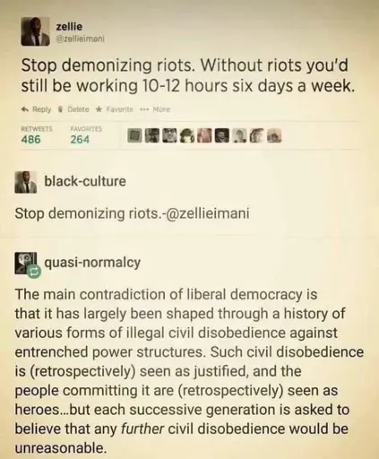 Yes, because it’s long been true and people didn’t fucking listen. Now my country doesn’t even really have liberal democracy, and people are still himing and hawing about disruption being bad and lawbreaking being bad
