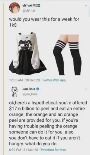 minus-squarepiccolo@sh.itjust.workslinkfedilinkEnglisharrow-up22·8 days ago$1k/w is what i earn doing my job… your telling me i can take a week off and hide in my room and all i have to get my fat ass in some clothing with no obligations to leave my house? Where do i sign up?