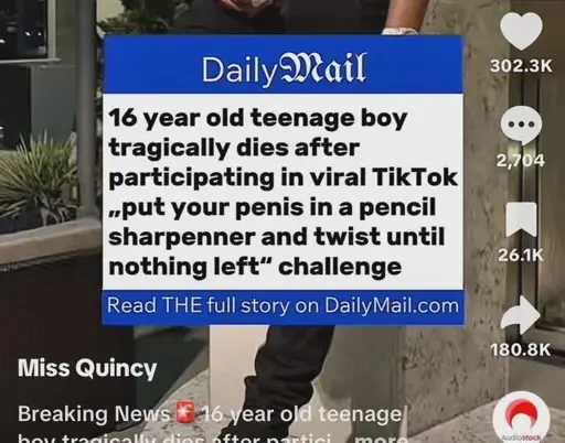 I think this is satire to how whenever some kid dies by doing something stupid news articles always blame some tiktok trend or something when literally no one heard about that trend. Like, dangerous trends on internet exist, but not every absurd or bizzare death is due to popular trends.