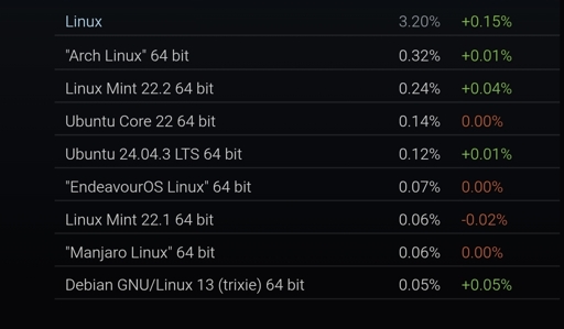 Ah, that makes way more sense. Nearly 6% of the gaming Linux market for such a new distro, and rapidly growing, sounds much more like where I would’ve expected Bazzite to place, based on my own experience and the tune of most recommendation threads here.