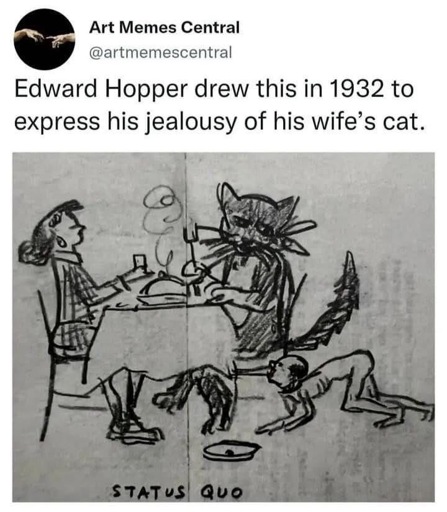 Maybe if people want the same level of love and affection we give our cats they should act more like cats. Be honest in your affection and displeasure. Respect peoples boundaries and inform them of yours. Don’t play games or use double speak. Don’t take it personally when people don’t want the same things as you. Value your own time ruthlessly. A cats love and trust are precious because you can trust that it’s real. Obviously peoples desires and relationships are more complex and nuanced than a cats, but I think most people can learn a lot from their example.